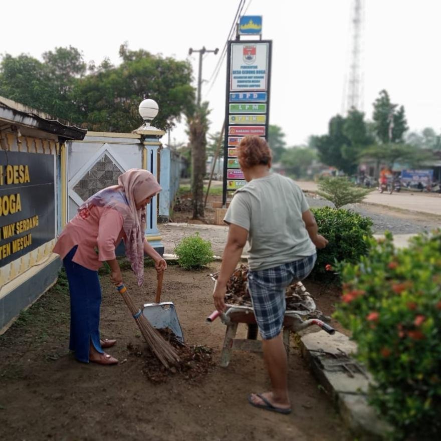 Assalamualaikum warahmatullahi Wabarakatuh Jum'at 4 Juli 2025 Kegiatan Jumat bersih para warga Desa Gedung Boga yang membersihkan lokasi sekitar Balai Desa Gedung Boga Kegiatan rutin tiap hari Jum'at ini sangat memberikan banyak dampak positif, selain tetap menjaga kebersihan lingkungan juga