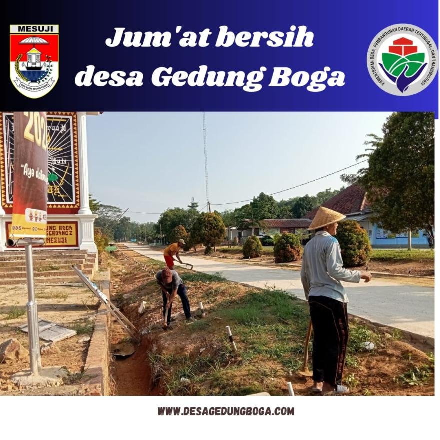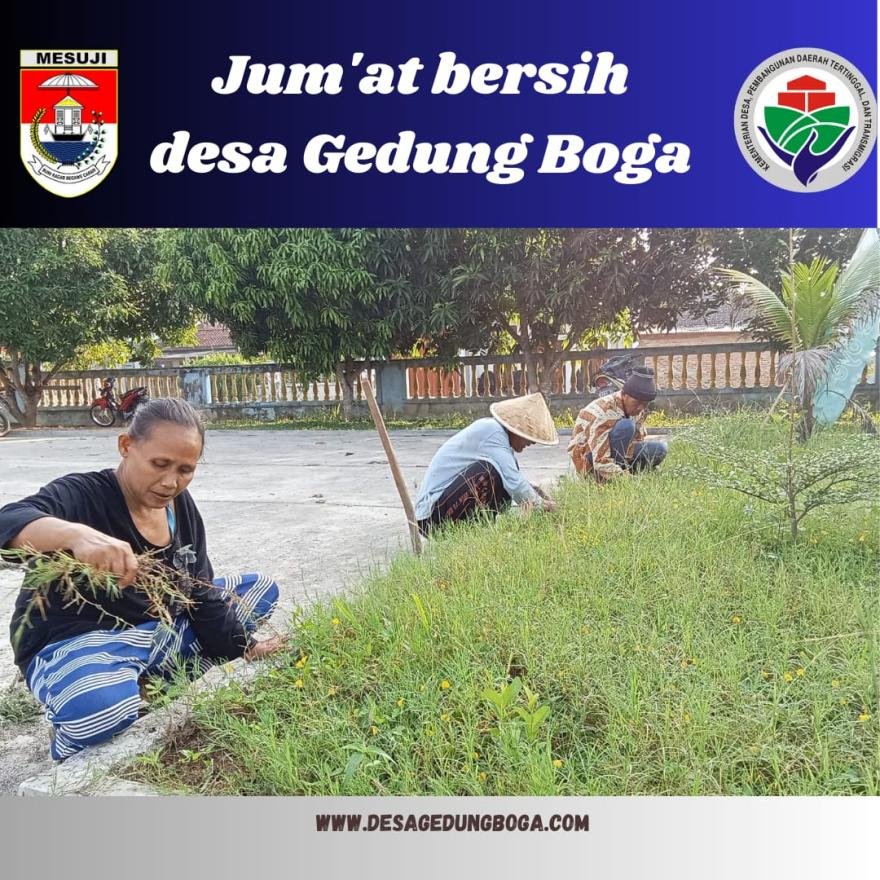 Kegiatan Jumat bersih para warga Desa Gedung Boga yang membersihkan lokasi sekitar Balai Desa Gedung Boga dan dusun Kedung rejo
