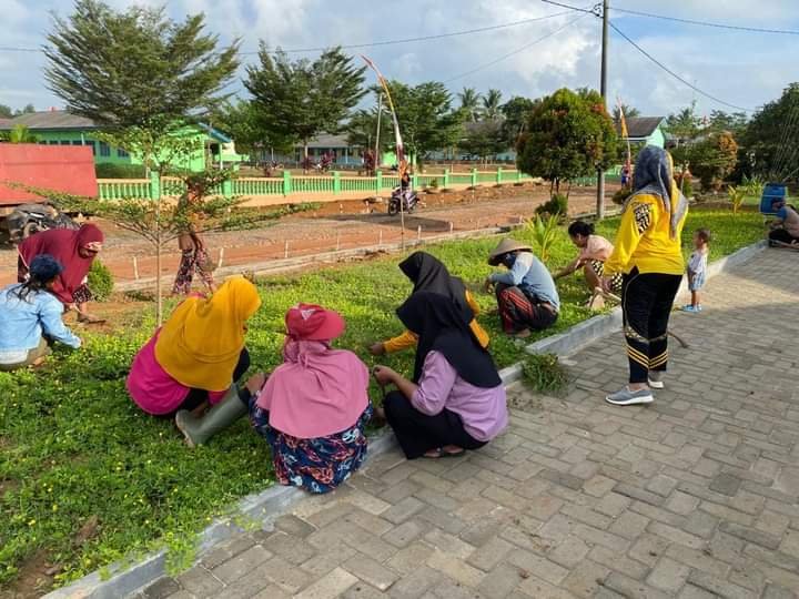 Dusun Tanjung Sari tampak membersihkan area sekitar lapangan grastrack yang memang sudah nampak dipenuhi oleh rerumputan.