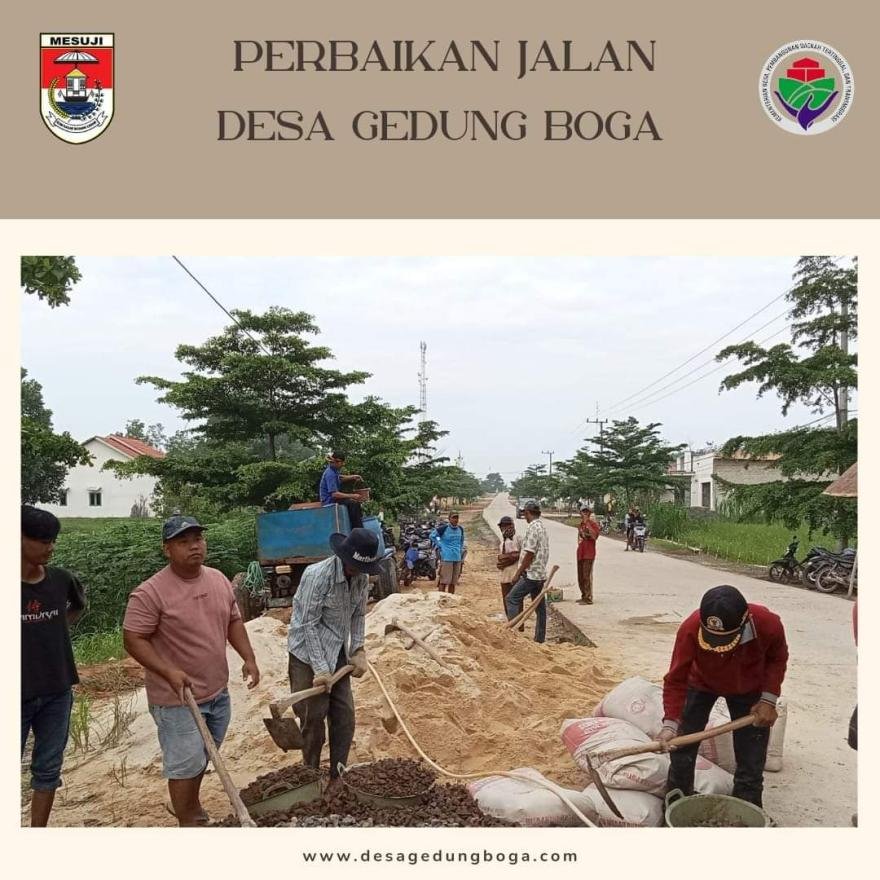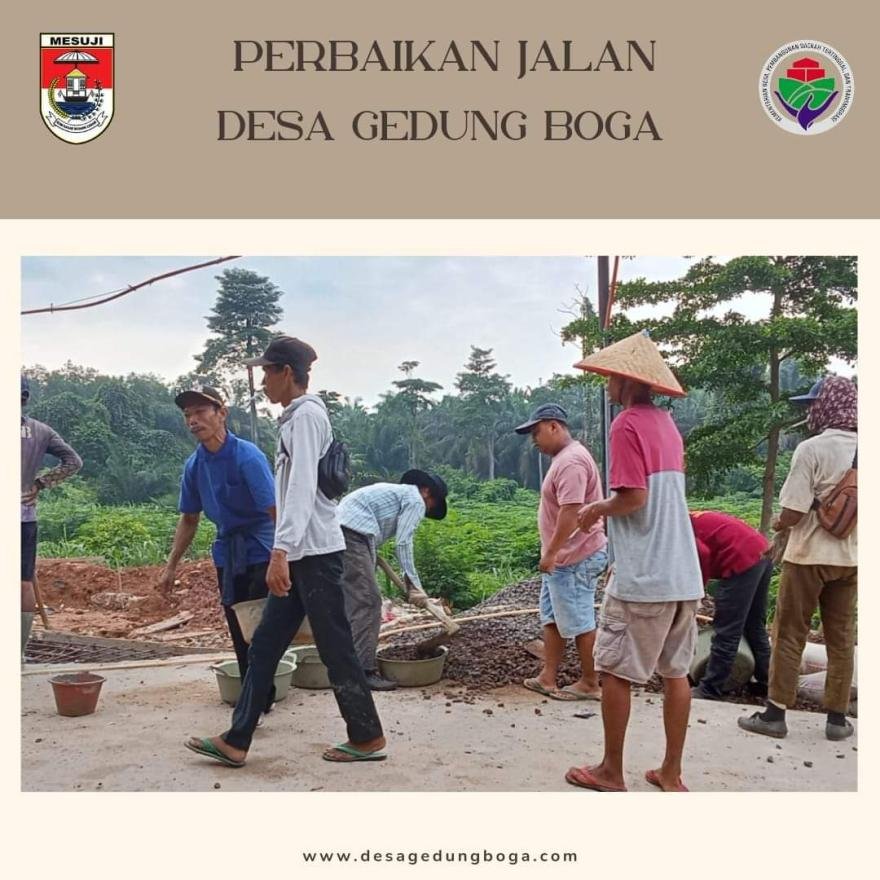 Warga Desa Gedung Boga melakukan perbaikan serta pengecoran jalan kabupaten, perbaikan jalan ini dilakukan secara bersama sama oleh semua literatur perangkat desa, mulai dari Sekretaris Desa , Rukun Kampung (RK) Rukun Tetangga (RT) hingga Linmas.