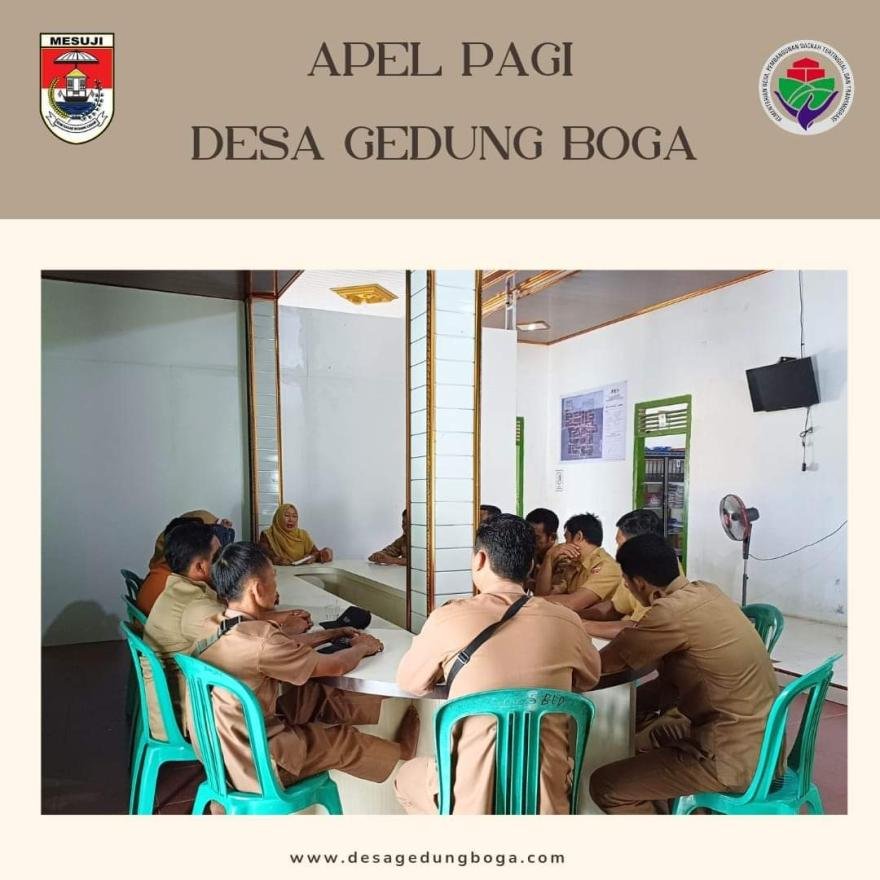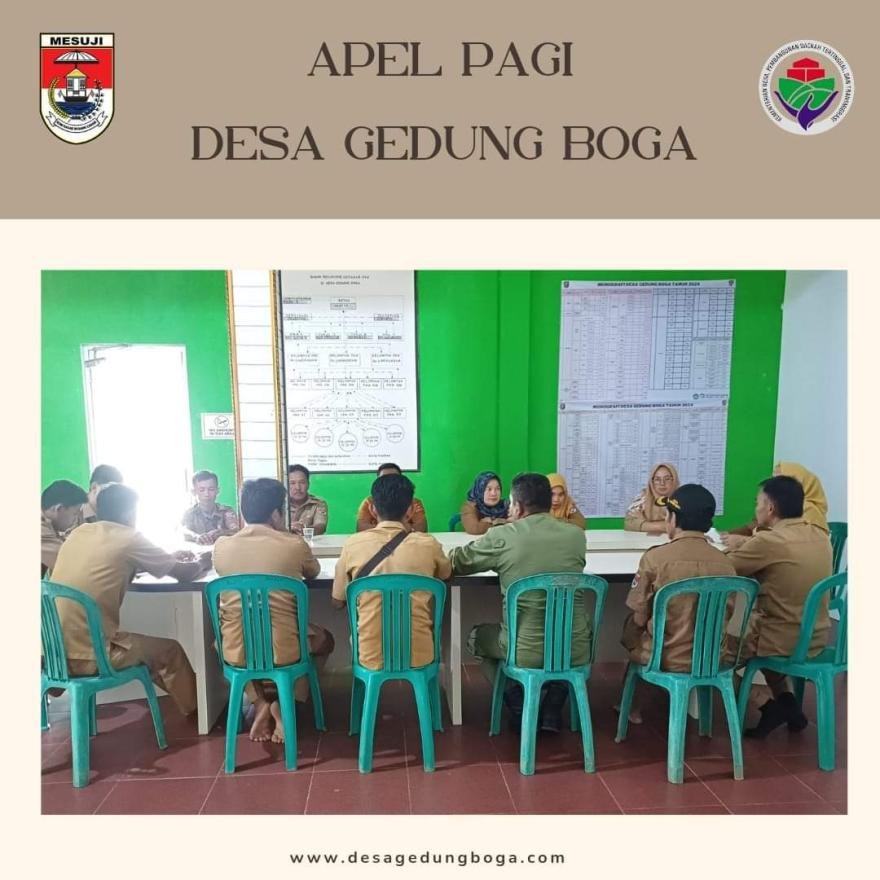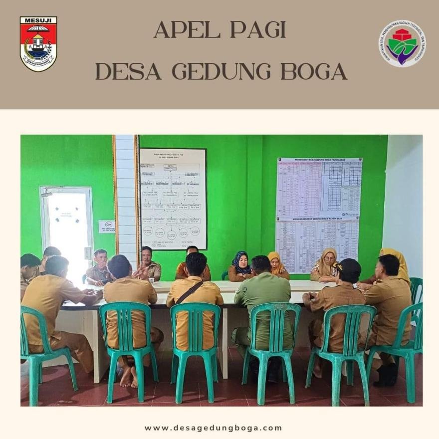 Rutinitas Apel pagi yang dilaksanakan oleh Seluruh Aparatur Desa Gedung Boga.