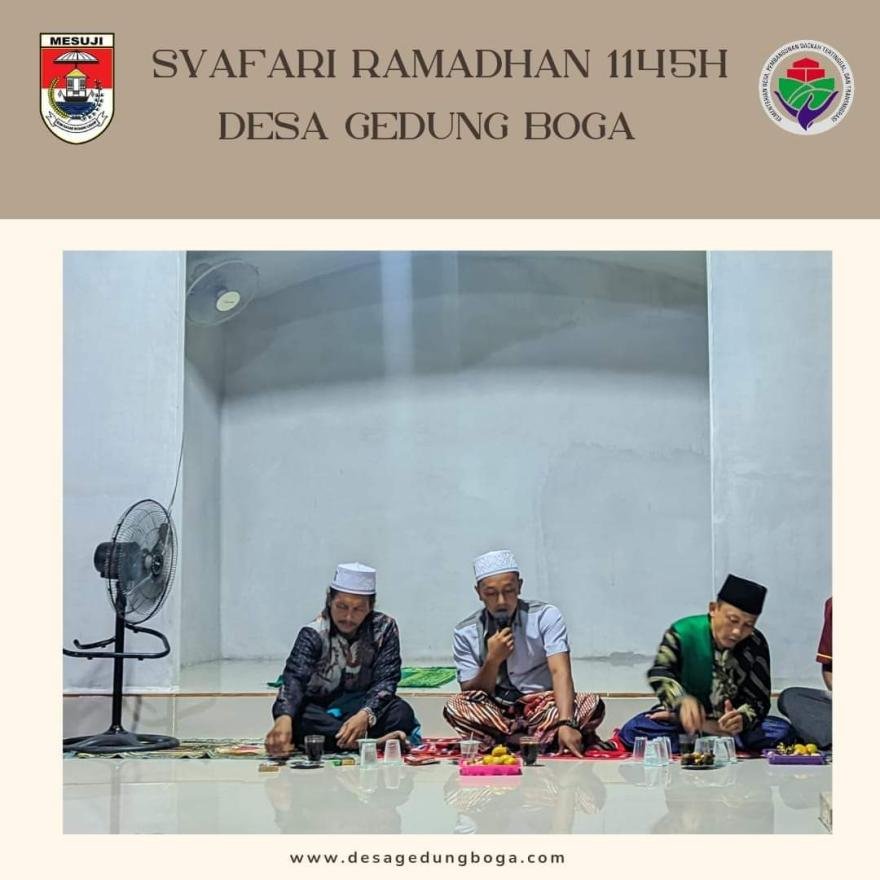 Rangkaian Kegiatan Syafari Ramadhan ini, yakni melaksanakan sholat tarawih di semua masjid mau mushola yang terdapat di kawasan Desa Gedung Boga.