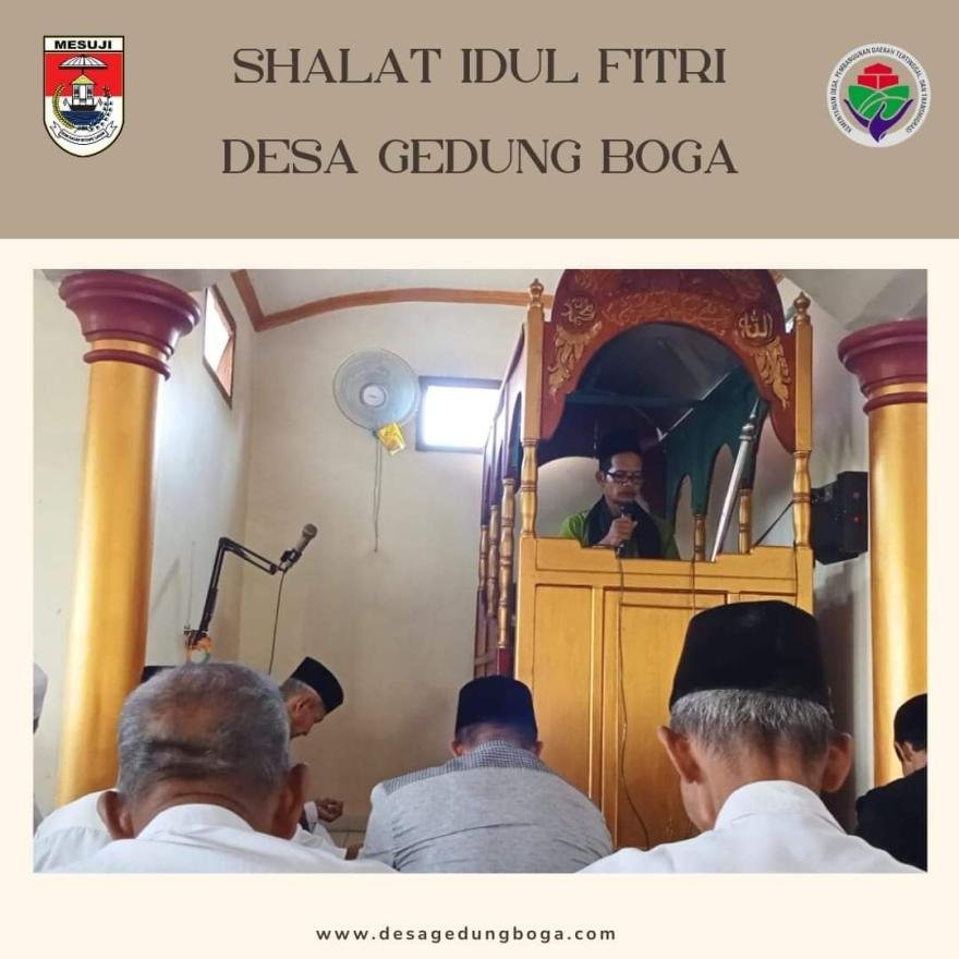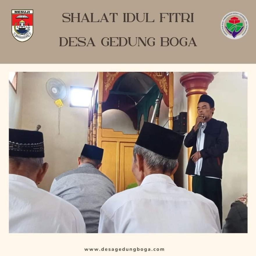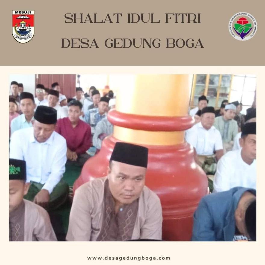 Kepala Desa Gedung Boga dan segenap aparatur desa juga nampak lakukan shalat idul fitri di Masjid yang sama.