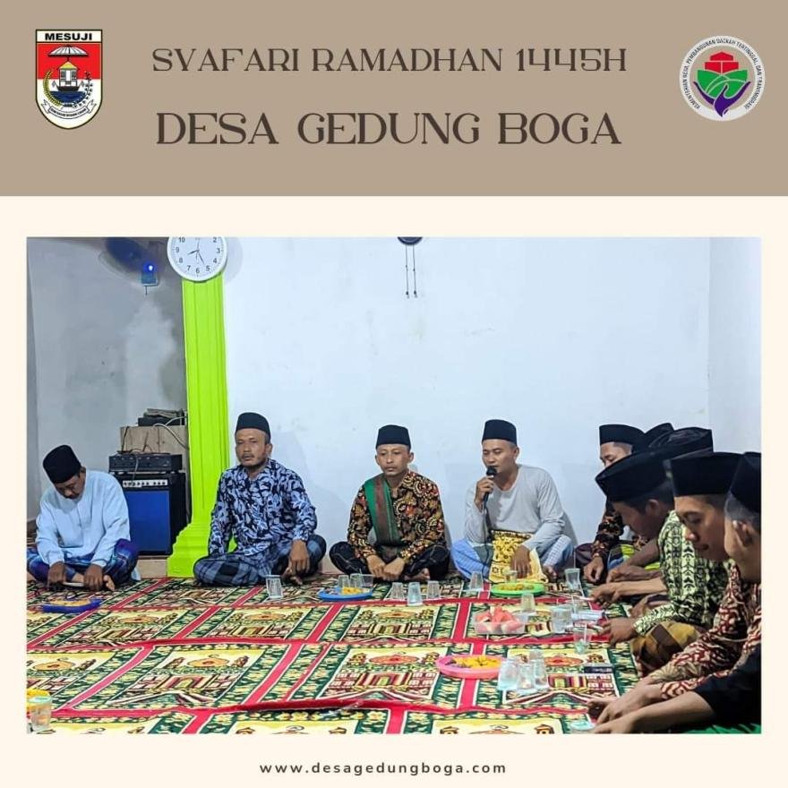 Rangkaian Kegiatan Syafari Ramadhan ini, yakni melaksanakan sholat tarawih di semua masjid mau mushola yang terdapat di kawasan Desa Gedung Boga.