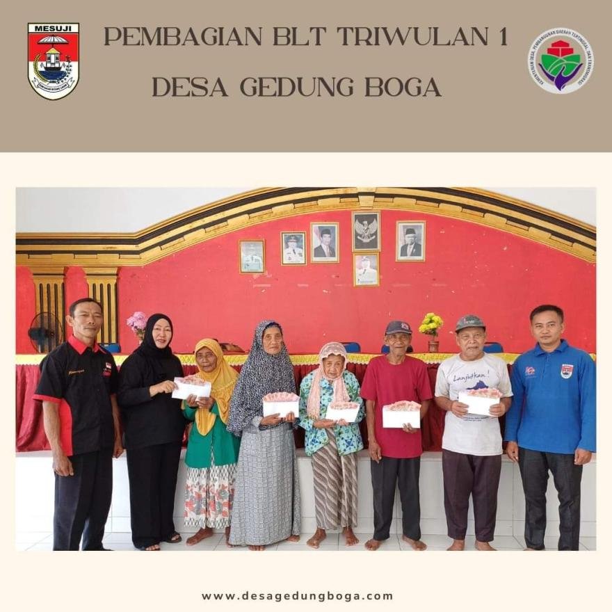 Pembagian Bantuan Langsung Tunai ini langsung dibagikan oleh Kepala Desa Gedung Boga, Hj Yulida Sri Wahyuni S.Pd, Sekretaris Desa dan Ketua BPD Desa Gedung Boga.