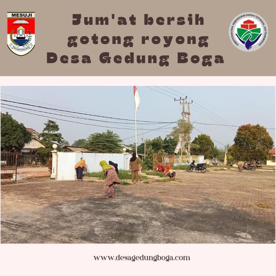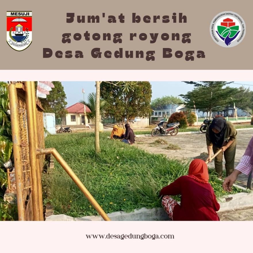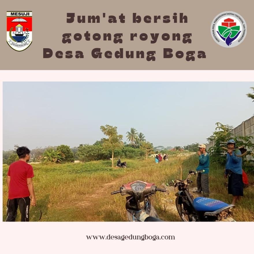 Rutinitas hari Jumat semua warga dan aparatur desa Gedung Boga bahu membahu melakukan kegiatan gotong royong.