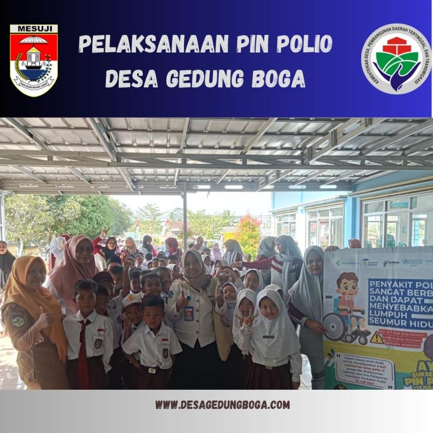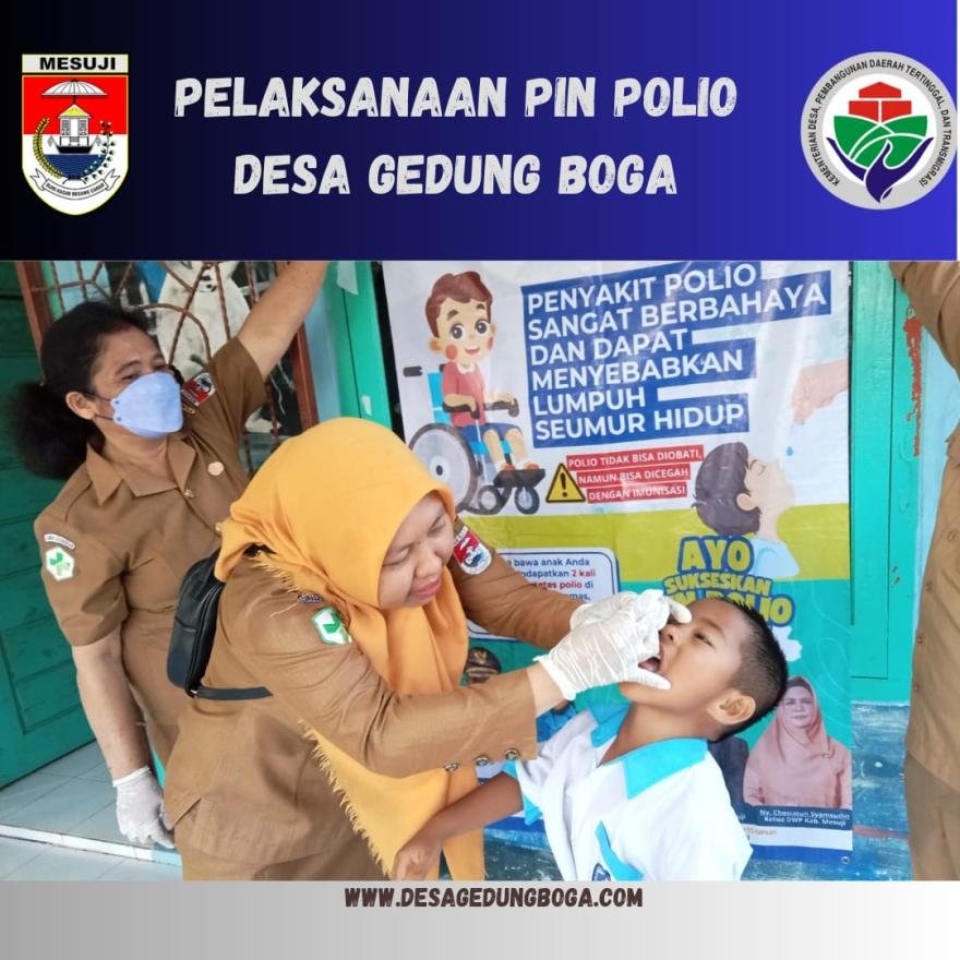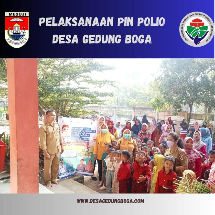 PIN Polio dilaksanakan dibeberapa tempat yaitu,Disekolah TK maupun SD yang bertempat di desa Gedung Boga dan dikantor balai Desa Gedung Boga