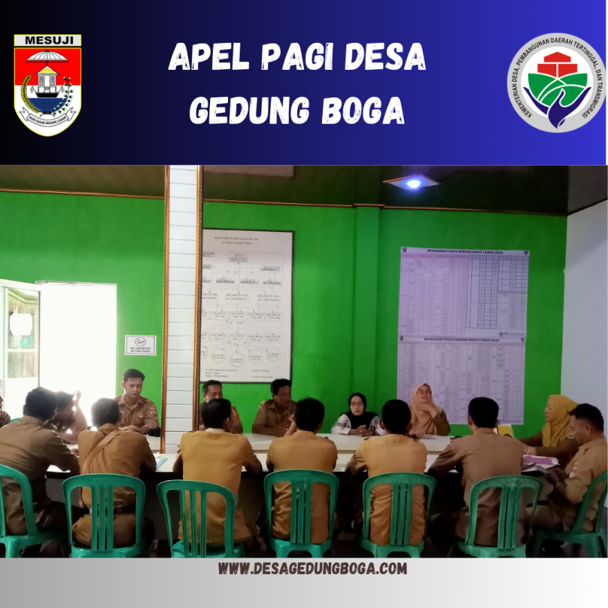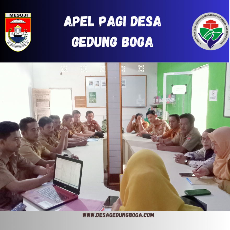 Apel pagi kali ini dihadiri oleh Kepala Desa, Sekretaris Desa, Linmas hingga para aparatur Desa Gedung Boga.