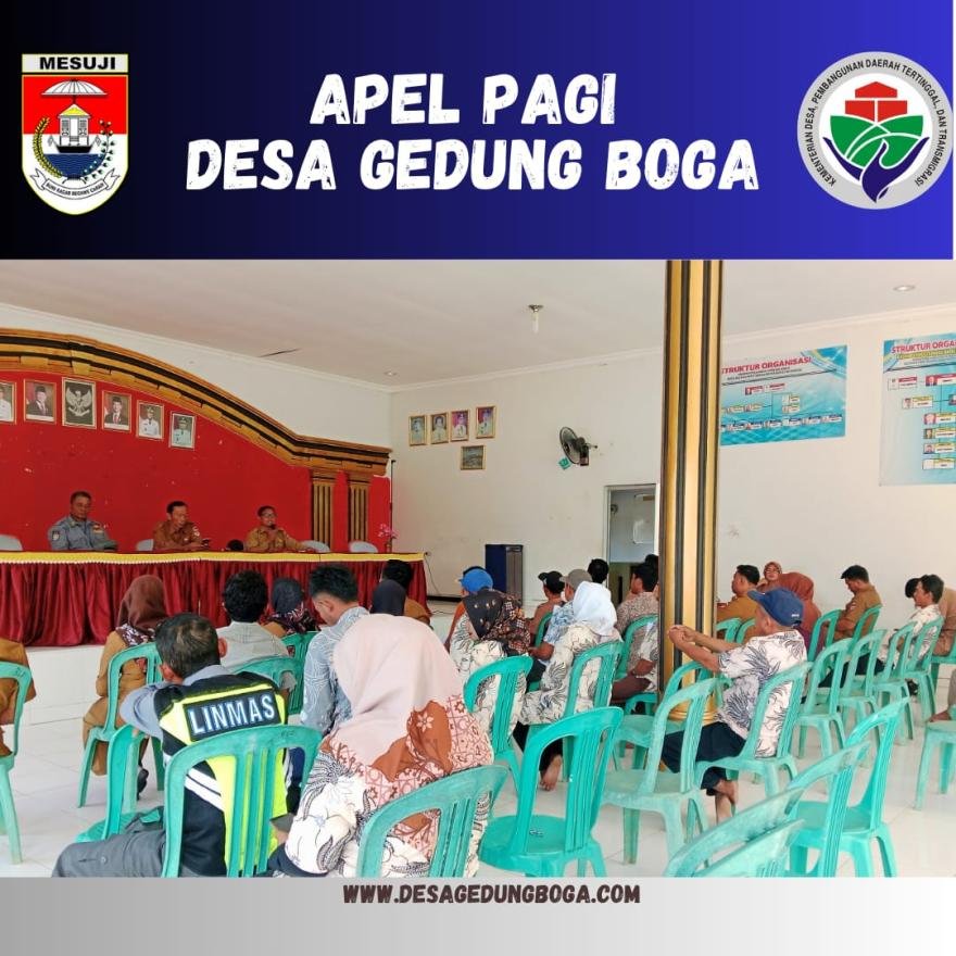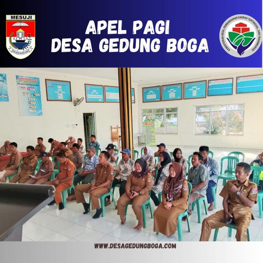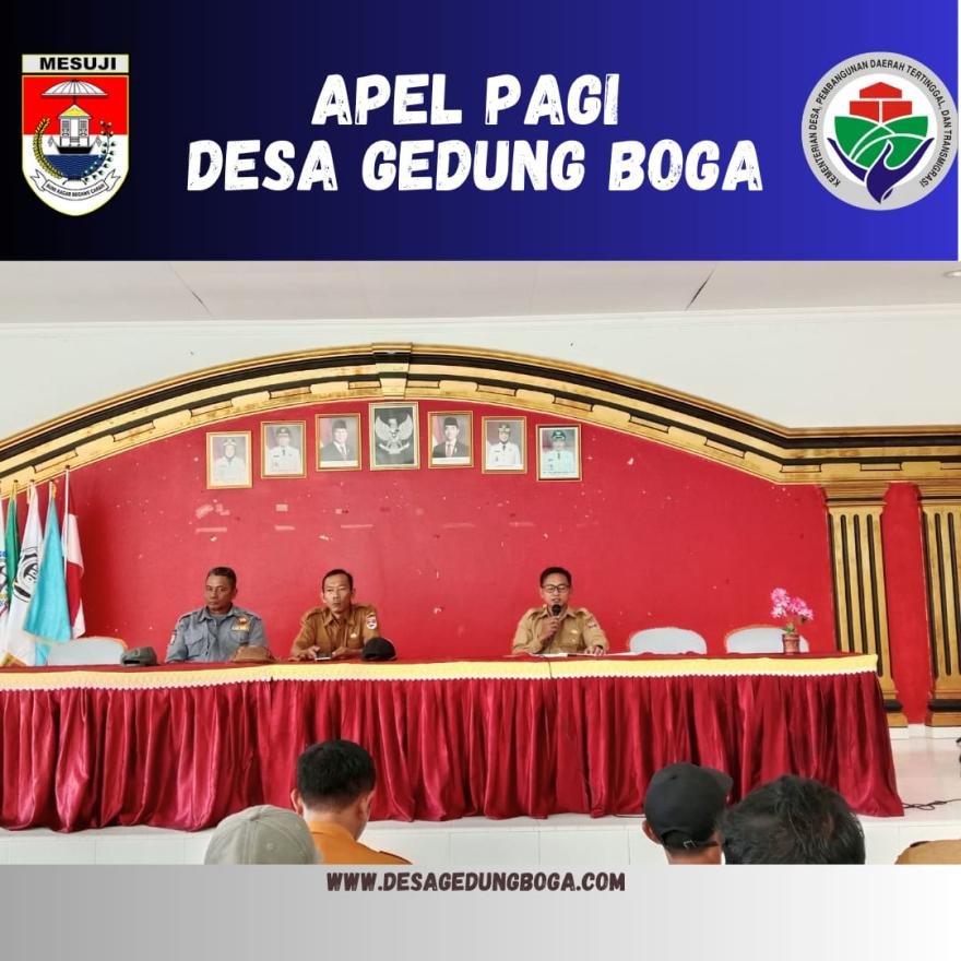 Rutinitas Apel pagi yang dilaksanakan di kantor Balai Desa Gedung Boga, apel pagi kali ini dipimpin oleh Sekretaris Desa yang mewakili Kepala Desa Gedung Boga.