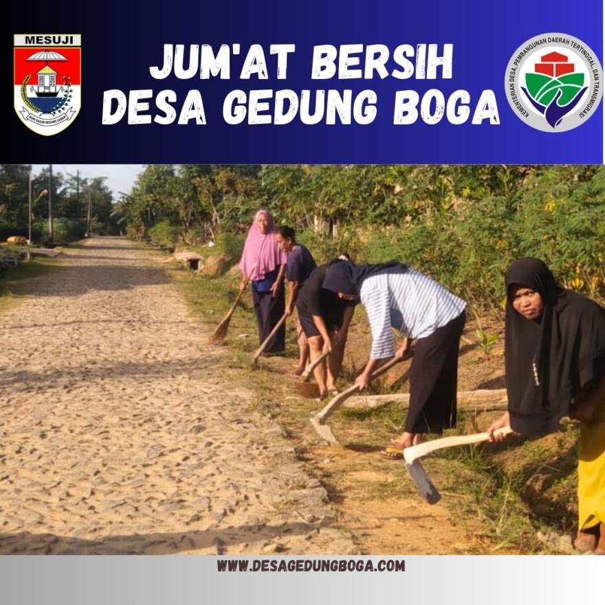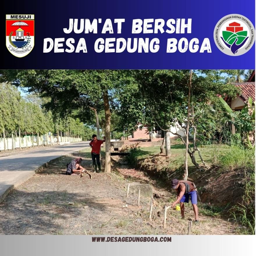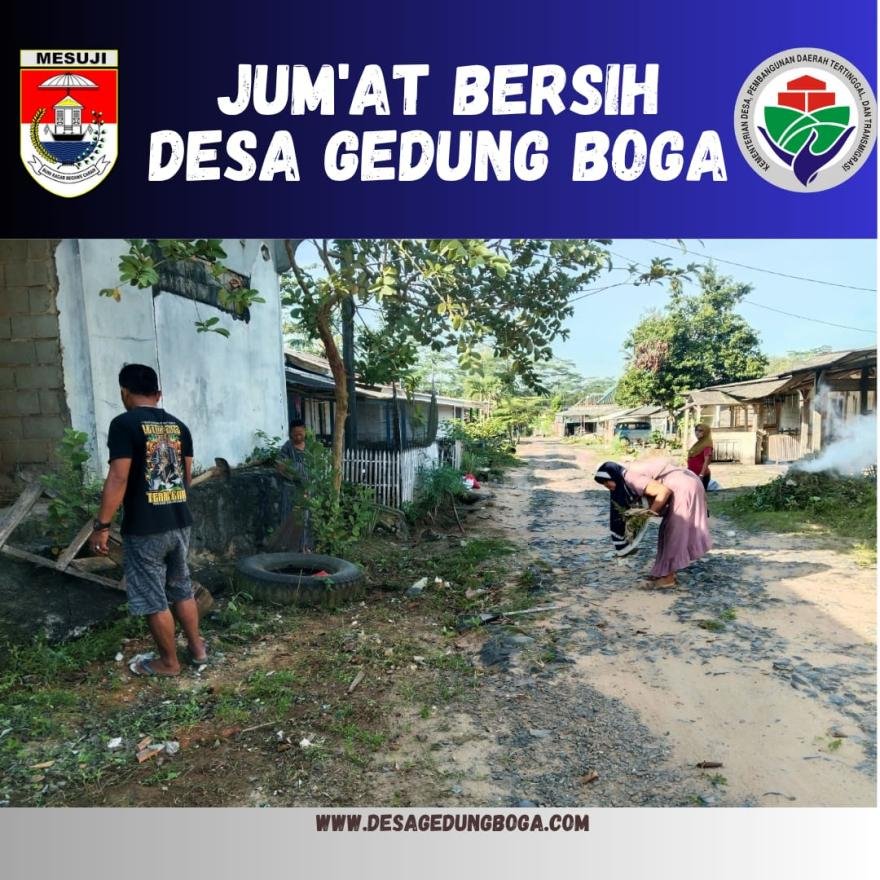 Kegiatan Jum'at Bersih, Pamong Desa Gedung Boga bersama Masyarakat Desa Gedung Boga Gotong Royong merapihkan pohon dan pembersihan Lingkungan