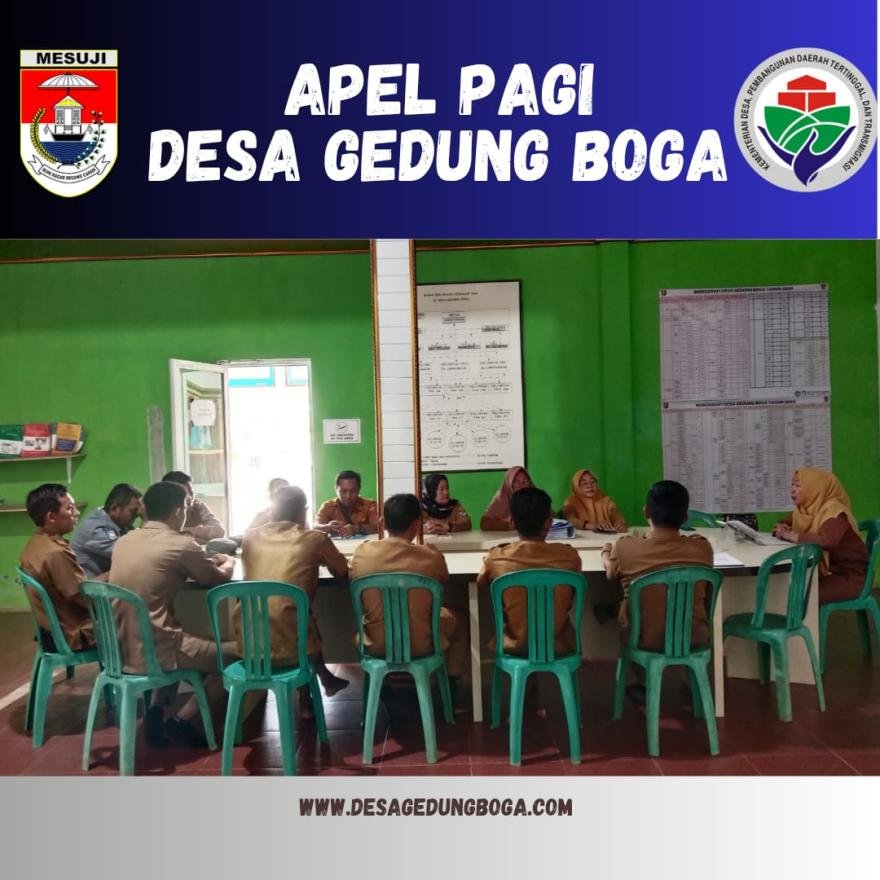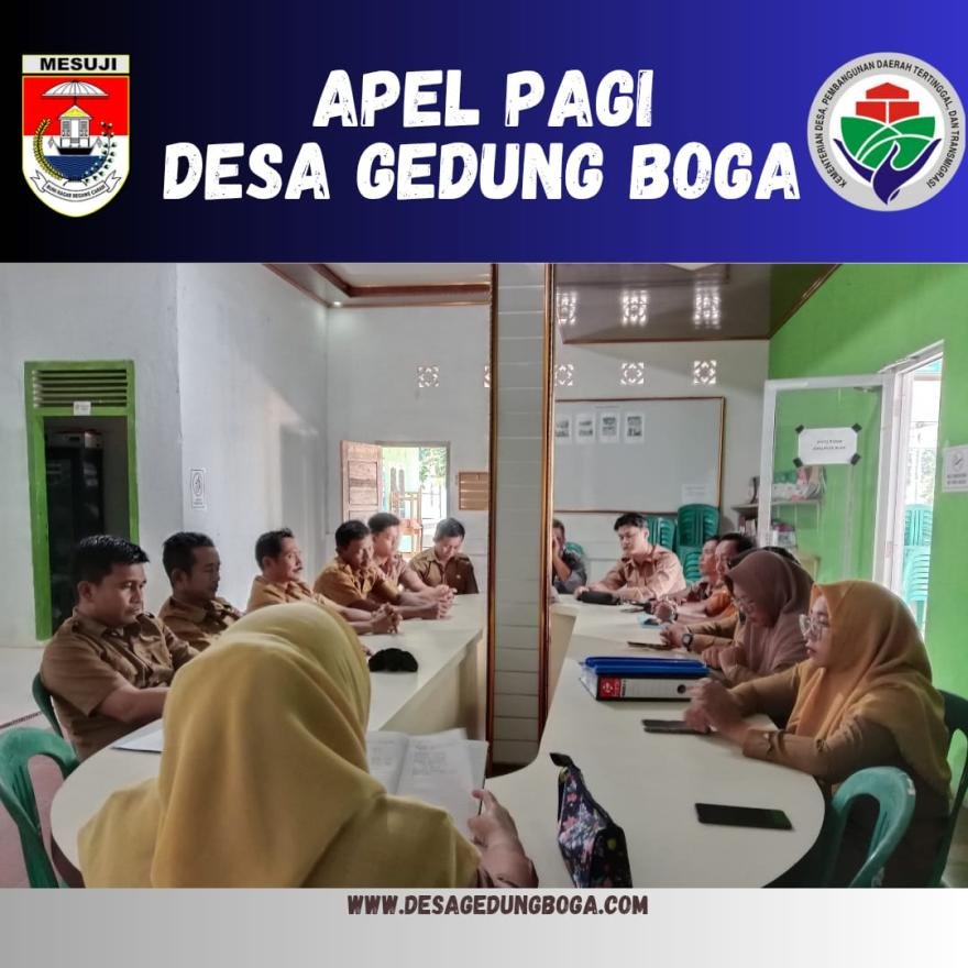 Kegiatan Rutinitas Apel pagi bersama Aparatur Desa Gedung Boga,yang dipimpin Kepala Desa Gedung Boga Hj Yulida Sri Wahyuni S.Pd. dalam apel pagi kali ini juga menyampaikan arahan tentang kebersihan Lingkungan, keamanan Lingkungan, Kegiatan Pembagunan, Persiapan Hut RI ke 80, dan Lainya