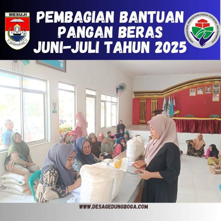 Penyaluran beras juga langsung dibagikan oleh Kepala Desa Gedung Boga ibu Hj Yulida Sriwahyuni S.Pd beserta aparatur desa lain nya. Dengan adanya pembagian Bantuan beras ketahanan pangan semoga dapat bermanfaat bagi yang menerima.