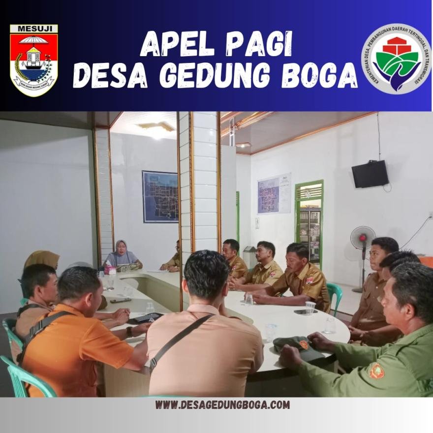 Assalamualaikum warahmatullahi Wabarakatuh Senin, 28 Juli 2025 Apel pagi dan evaluasi kerja Minggu Lalu yang telah terlaksana.Semoga cita-cita kita bersama dapat tercapai dan berjalan degan lancar tanpa satu hambatan apapun demi Desa Gedung Boga yang sejahtera bersatu maju. Kegiatan Rutinitas