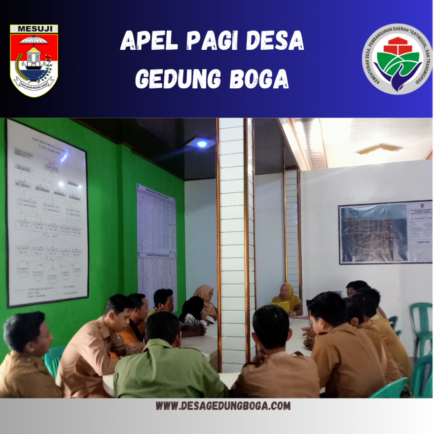 Assalamualaikum warahmatullahi Wabarakatuh Senin, 18 Maret Kegiatan apel pagi perdana di Bulan Suci Ramadhan yang dipimpin langsung oleh Kepala Desa Gedung Boga Hj Yulida Sriwahyuni S.Pd yang beranggotakan sekdes dan Rukun Kampung (RK). Pembahasan kali ini mengenai kebersihan lingkungan, mengingat